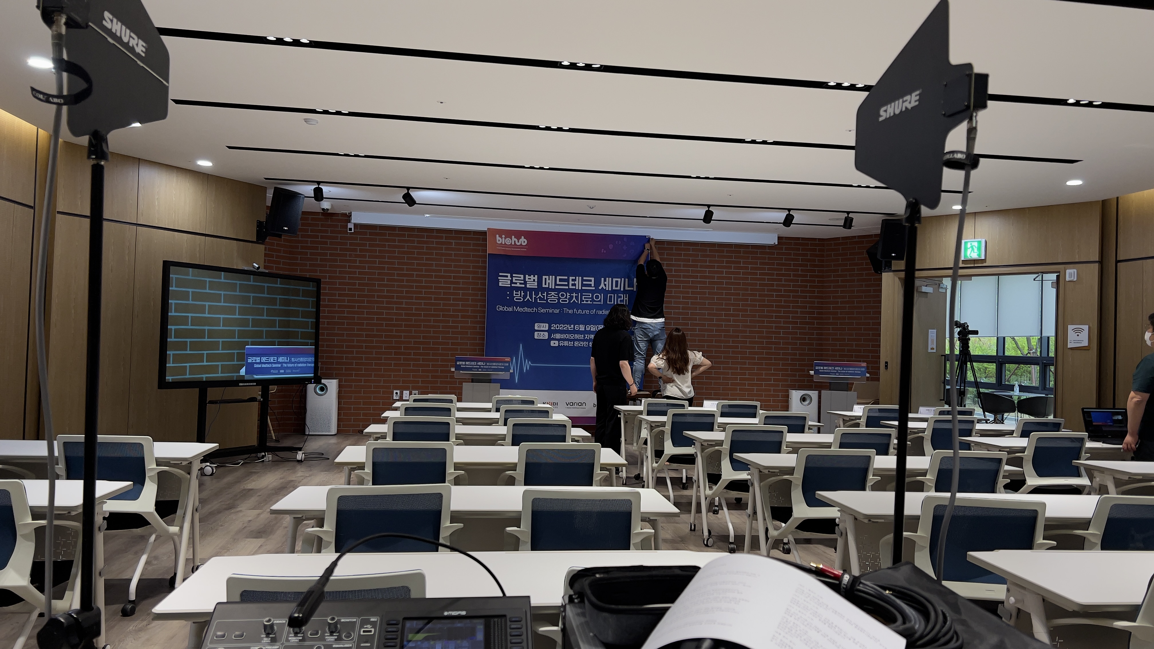 방사선 종양치료와 바이오 창업기업의 해외진출 주제로 진행된 세미나입니다.음향기기 설치 및 전문인력 지원으로 함께하였습니다. CLIENT 한국보건산업진흥원DATE 2022. 6. 9.TYPE 세미나