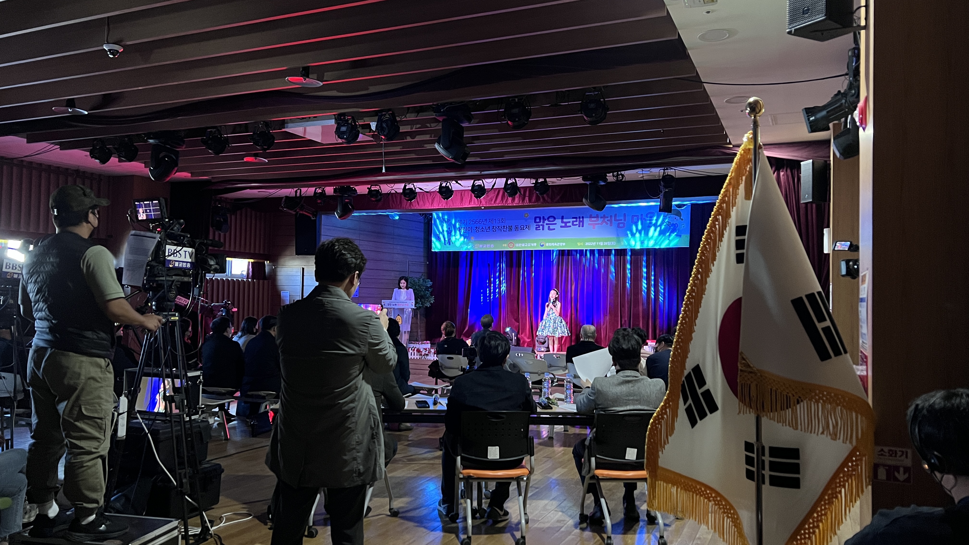 찬불가 경연대회, 창작찬불 동요제 본선 무대가 종로노인종합복지관에서 진행되었습니다.공연이 가능한 환경을 조성하고 음향기기 설치 및 전문 인력 지원으로 함께하였습니다. CLIENT BBS불교방송DATE 2022. 11. 26.TYPE 종교 행사