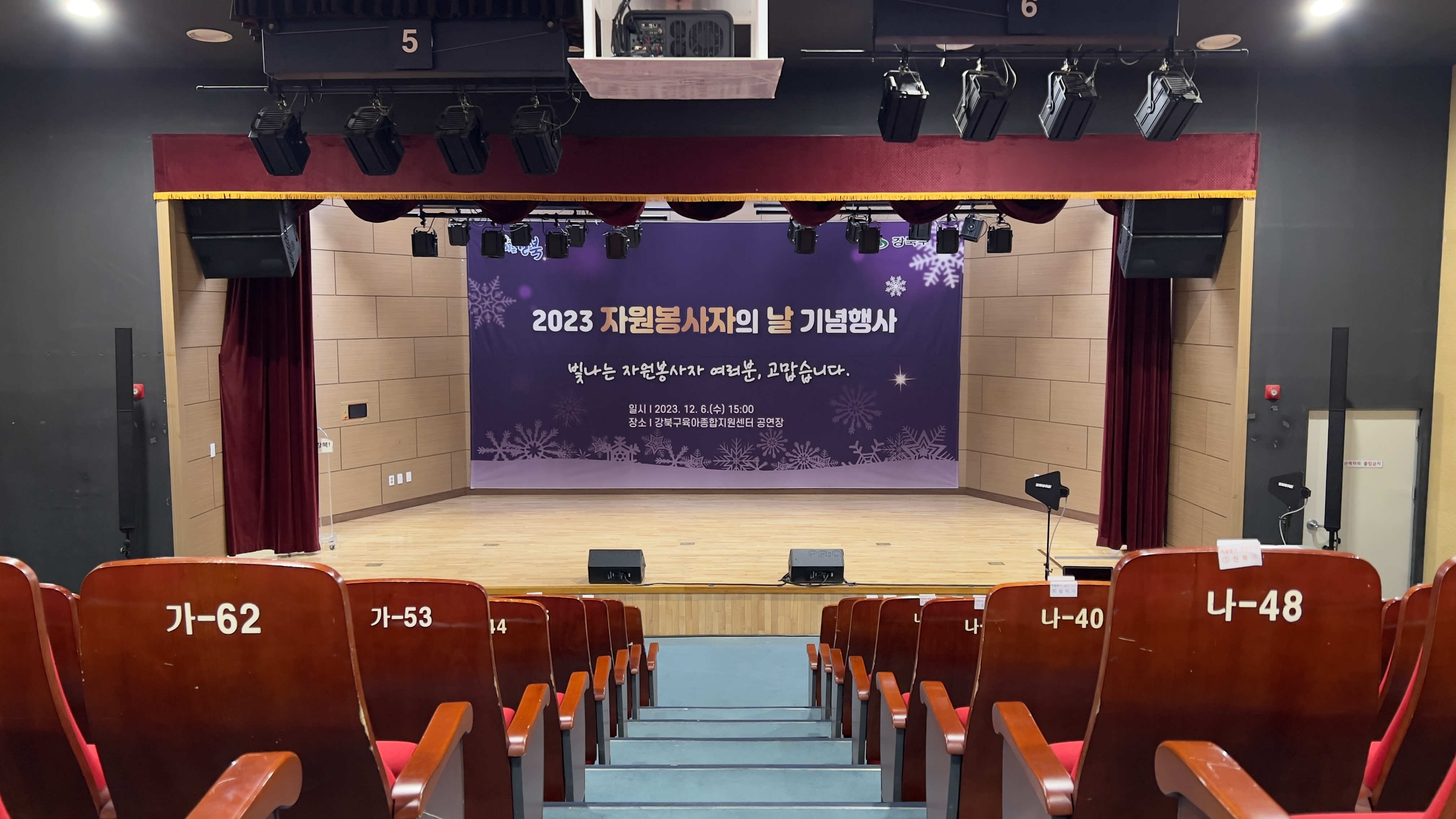 자원봉사자들과 그들이 베푼 수고에 답하는 자리로 강북구 육아종합지원센터에서 진행되었습니다.음향기기 설치 및 전문인력 지원으로 함께하였습니다. CLIENT 강북구청DATE 2023. 12. 06.TYPE 기념 행사