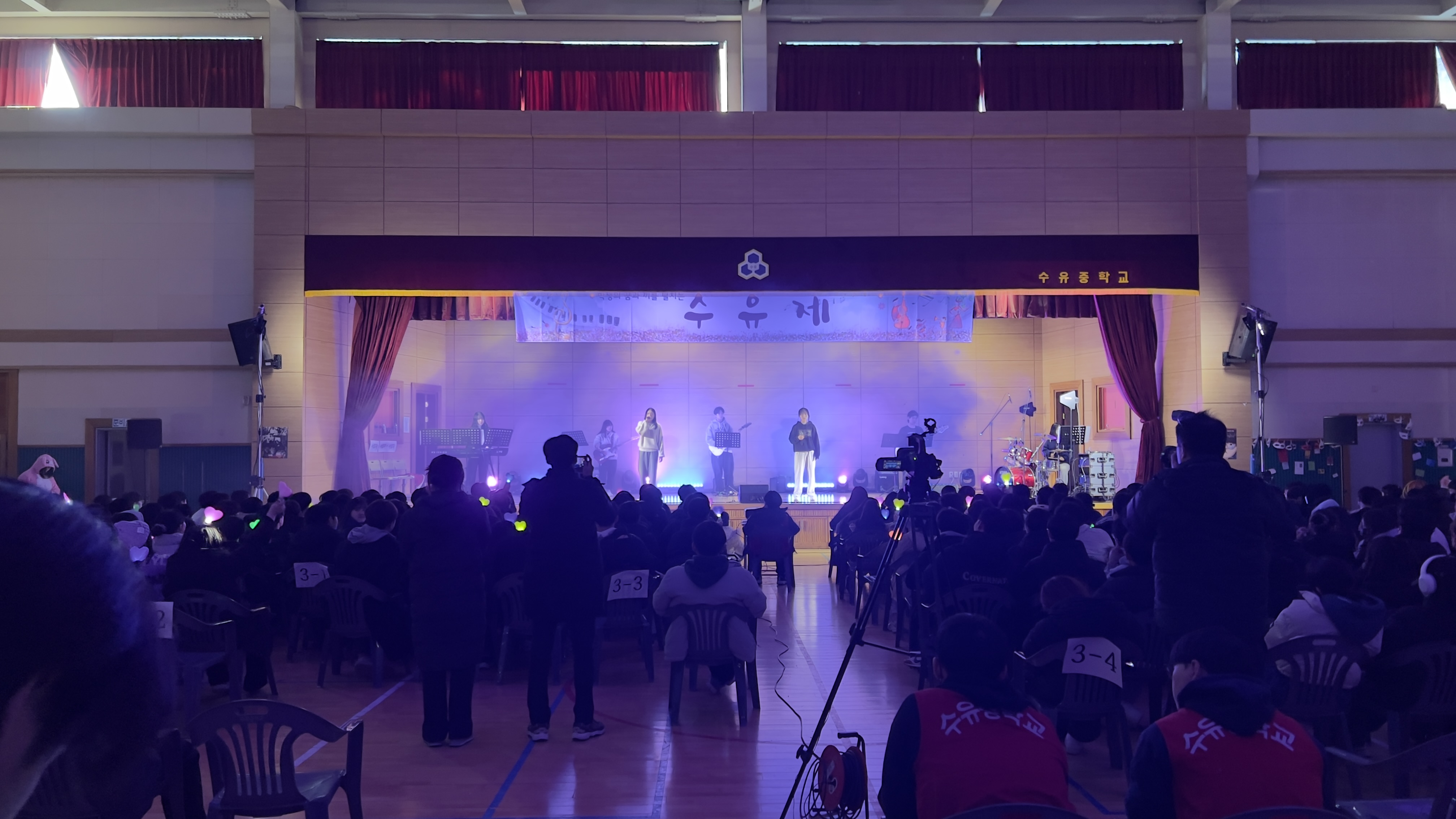 2023 수유중학교 축제가 체육관에서 진행되었습니다.공연이 가능한 환경을 조성하고 음향기기 설치 및 전문 인력 지원으로 함께하였습니다. CLIENT 수유중학교DATE 2023. 12. 22.TYPE 학교 행사