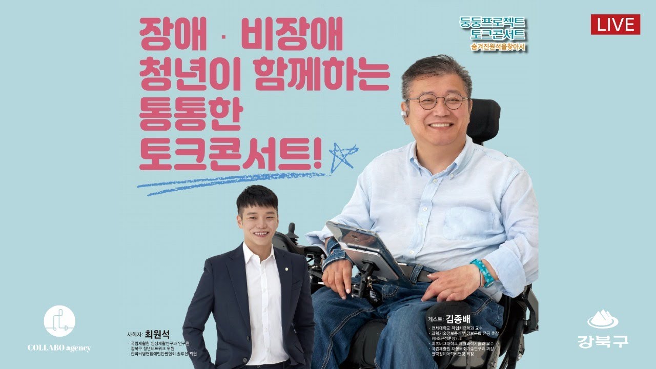 장애·비장애 청년이 함께하는 <둥둥프로젝트> 가 온라인으로 진행되었습니다.온라인 송출 시스템과 음향 기기, 전문인력을 지원하였습니다. CLIENT 강북구청DATE 2020. 9. 5.TYPE Youtube 생중계